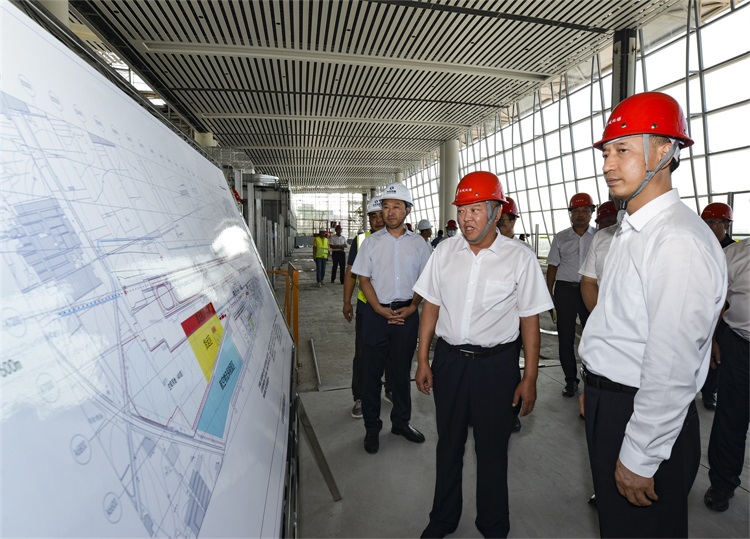 盧東亮深入工地現場,認真聽取運城民航機場有限公司董事長郝榮生的匯報,詳細了解項目進展及站前立體交通樞紐、邊防檢查站執勤業務用房、航食廠區、航空加油站、航空油庫等配套設施建設情況,并對項目到位的安全文明施工措施、熱火朝天的建設景象給予了高度肯定。目前,項目正在進行航站樓裝飾裝修及玻璃幕墻、空調強弱電的安裝工作。在保障安全和質量的前提下,近400名工人正全力以赴趕進度,確保如期完成建設任務。